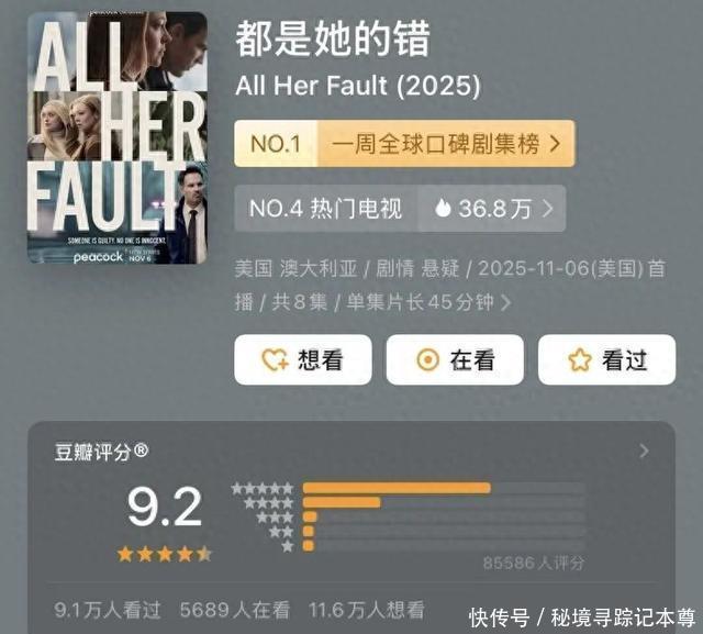没想到得到年最酣畅淋漓的观剧体验,在我超高的预期之上,它甚至还带给我了更多的惊喜。 我说的这部剧就是这部最近大热的美剧—— 《都是她的错》 。